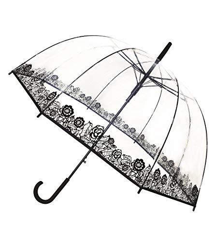 SMATI SMARTBUL6133DENTELLENEW Parapluie Cloche/Dôme Transparent pour Femme - Système d'ouverture Automatique - Large Protection avec Diamètre 81cm - Résistant au Vent - Bordure Dentelle