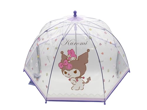 CYPBRANDS Marques CyP - Hello Kitty, Sanrio Kuromi, Parapluie enfant, Manuel, Transparent, Type bulle, 48 cm, Licence officielle, Résistant au vent