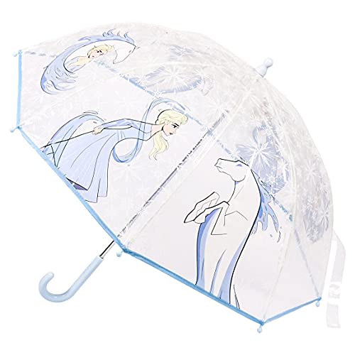 Textiel Trade Parapluie transparent pour enfant La Reine des Neiges II Elsa et Cheval, bleu, Taille Unique