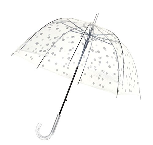 SMATI Parapluie Long - Transparent – Forme Cloche - 8 Baleines en Fibre de Verre - Anti-Vent - Extreme Solide - aux Pois argentés