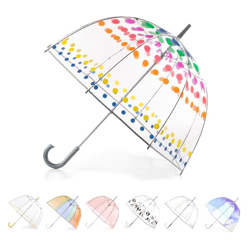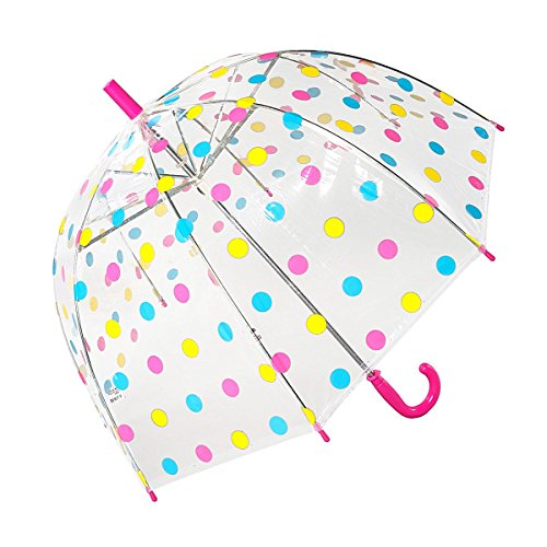 Susino Parapluie Cloche/Dôme Pois Multicolores Fille, Parapluie Transparent Baleines Sécurisées Enfant, Ultra Léger, Solide et Long, Diamètre de 72 cm, Parapluie à Pois