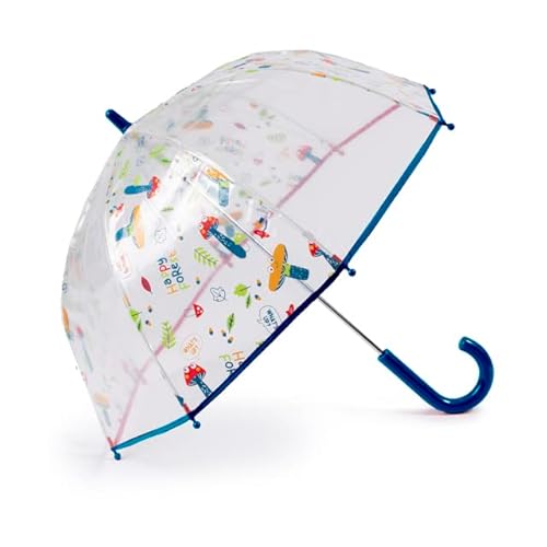 Parapluie transparent VOGUE XUVA Kids Happy Forest. Enfantin et amusant. Système anti-vent (Wind-Proof). Ouverture manuelle (Champignons bleus)