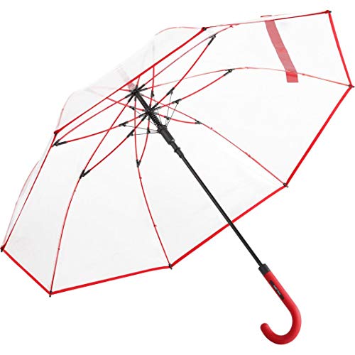 FARE Parapluie Transparent - Parapluie Femme Automatique - Poignée Rouge - Bordure et Baleines Rouge