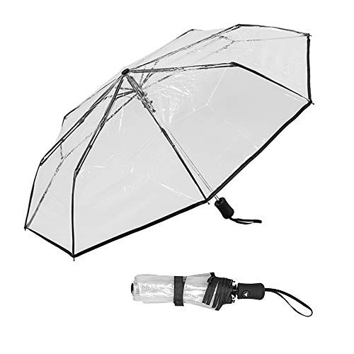 Susino Parapluie Pliant Transparent pour Femme - Ultra Compact avec 29CM de longueur - Solide Anti-vent - Diamètre de 90CM - Système d'ouverture Automatique