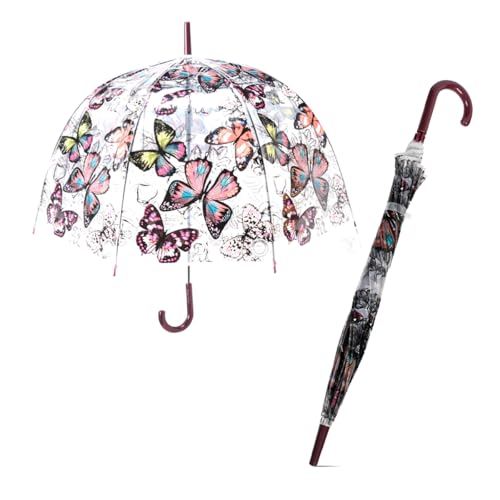 Le Monde du Parapluie - Parapluie droit cloche transparent - Design papillon avec poignée marron