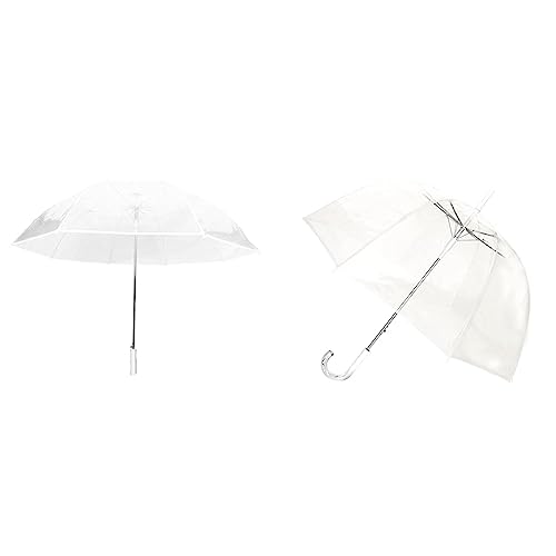 SMATI Grand Parapluie Golf Transparent - Solide ; Diamètre= 124cm & Grand Parapluie Long Transparent - Résistant au Vent ; 12 baleines ; Diamètre=102cm ; Ouverture automatique ; Parapluie femm