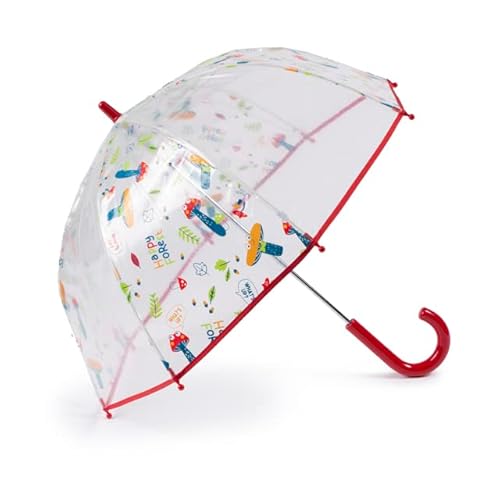 Parapluie transparent VOGUE XUVA Kids Happy Forest. Enfantin et amusant. Système anti-vent (Wind-Proof). Ouverture manuelle (Champignons rouges)