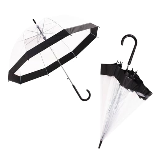 SMATI Parapluie Long Transparent, Forme Cloche, Classique, Ouverture automatique, Parapluie Femme, Couleur Liseret Noir