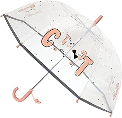 SMATI SMARTBULLE Parapluie Enfant Transparent Cloche - Bordure réfléchissante: Résistant au vent ; Diamètre=71cm ; ouverture manuel ; Parapluie Fille ; Motif : CHAT