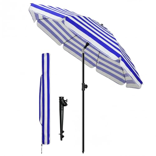 vounot® Parasol de Jardin 200cm Inclinable Hauteur Réglable avec Ancrage au Sol Parasol de Plage Protection UV 50+ avec Sac de Transport pour Plage Terrasse Balcon Camping Rayures Bleu Mixte
