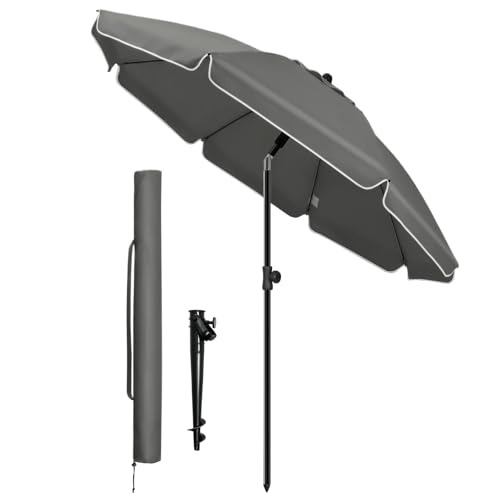 vounot® Parasol de Jardin 200cm Inclinable Hauteur Réglable avec Ancrage au Sol Parasol de Plage Protection UV 50+ avec Sac de Transport pour Plage Terrasse Balcon Camping Gris