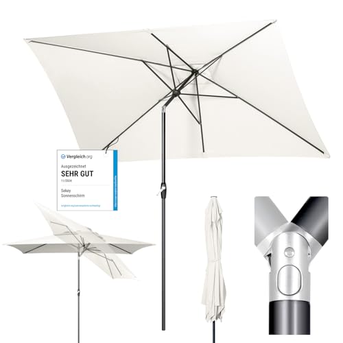 Sekey Parasol Aluminium Rectangulaire 210x140 cm pour Balcon, Jardin & Terrasse - Protection UV 50+ e, Ventilation et Matériau Recyclé (Certifié GRS)
