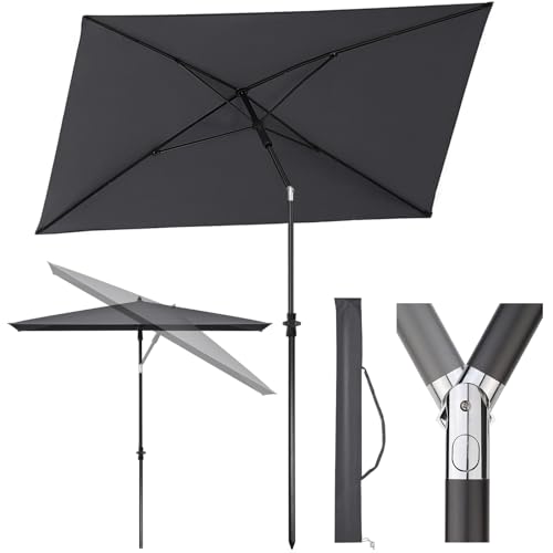 vounot® Parasol Inclinable Rectangulaire 200x125cm Hauteur 2m35 Toile Polyester 160gr/m2 avec Protection UV Parasol Pliable pour Extérieur Housse de Protection Inclus Gris Foncé