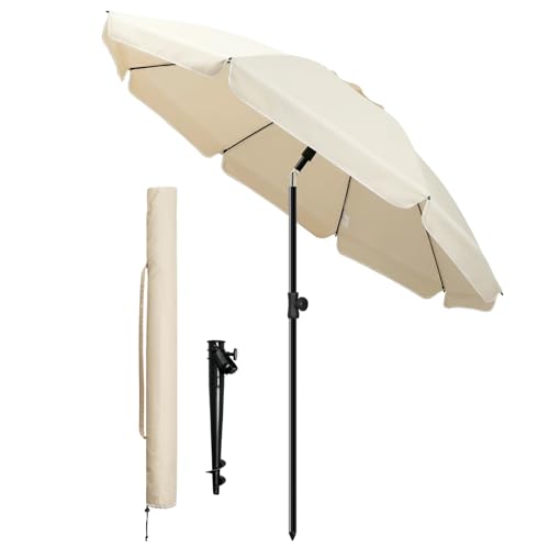 vounot® Parasol de Jardin 200cm Inclinable Hauteur Réglable avec Ancrage au Sol Parasol de Plage Protection UV 50+ avec Sac de Transport pour Plage Terrasse Balcon Camping Beige