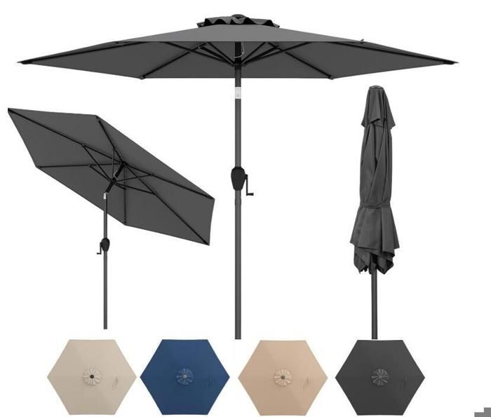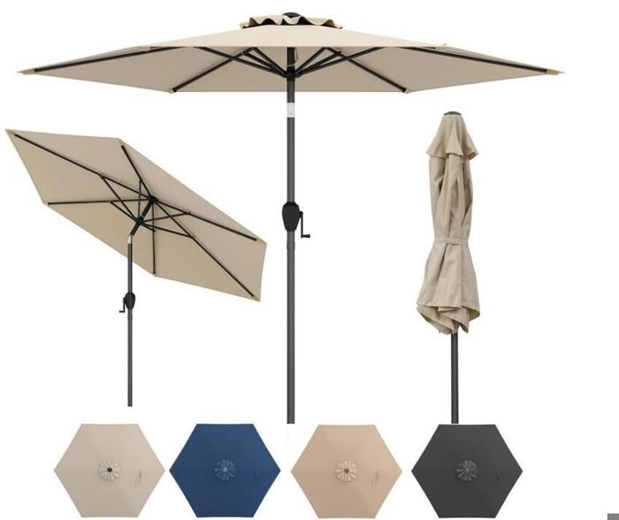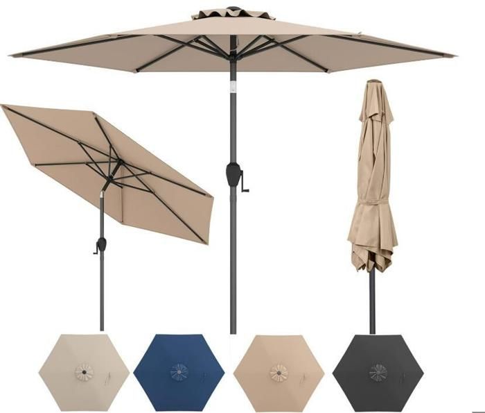 SONGMICS Parasol de Jardin 270 cm, Protection Solaire UPF 50+, Ombrelle, Inclinaison 30°, avec Manivelle, pour Terrasse, Balcon, Piscine, sans Socle, Beige GPU27BE