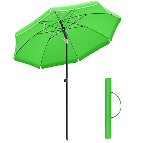 SONGMICS Parasol de 200 cm, Protection Solaire UPF 50+, Inclinable sur 30° dans les 2 sens, Hauteur Réglable, avec Sac de Transport, pour Balcon, Jardin, Terrasse, Plage, sans Base, Vert GPU65GNV1