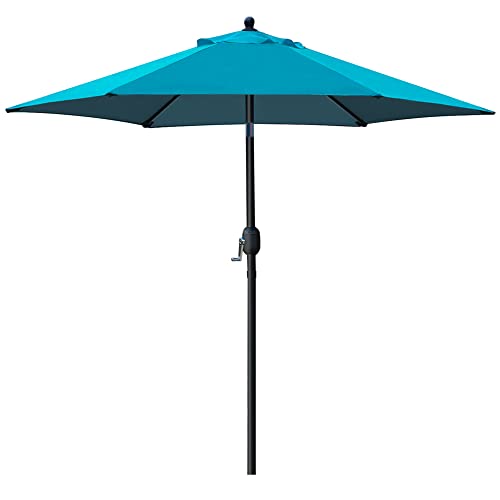 Sunnyglade Parasol de terrasse de 2,3 m pour table d'extérieur avec bouton-poussoir d'inclinaison/manivelle, 6 baleines (bleu sarcelle)