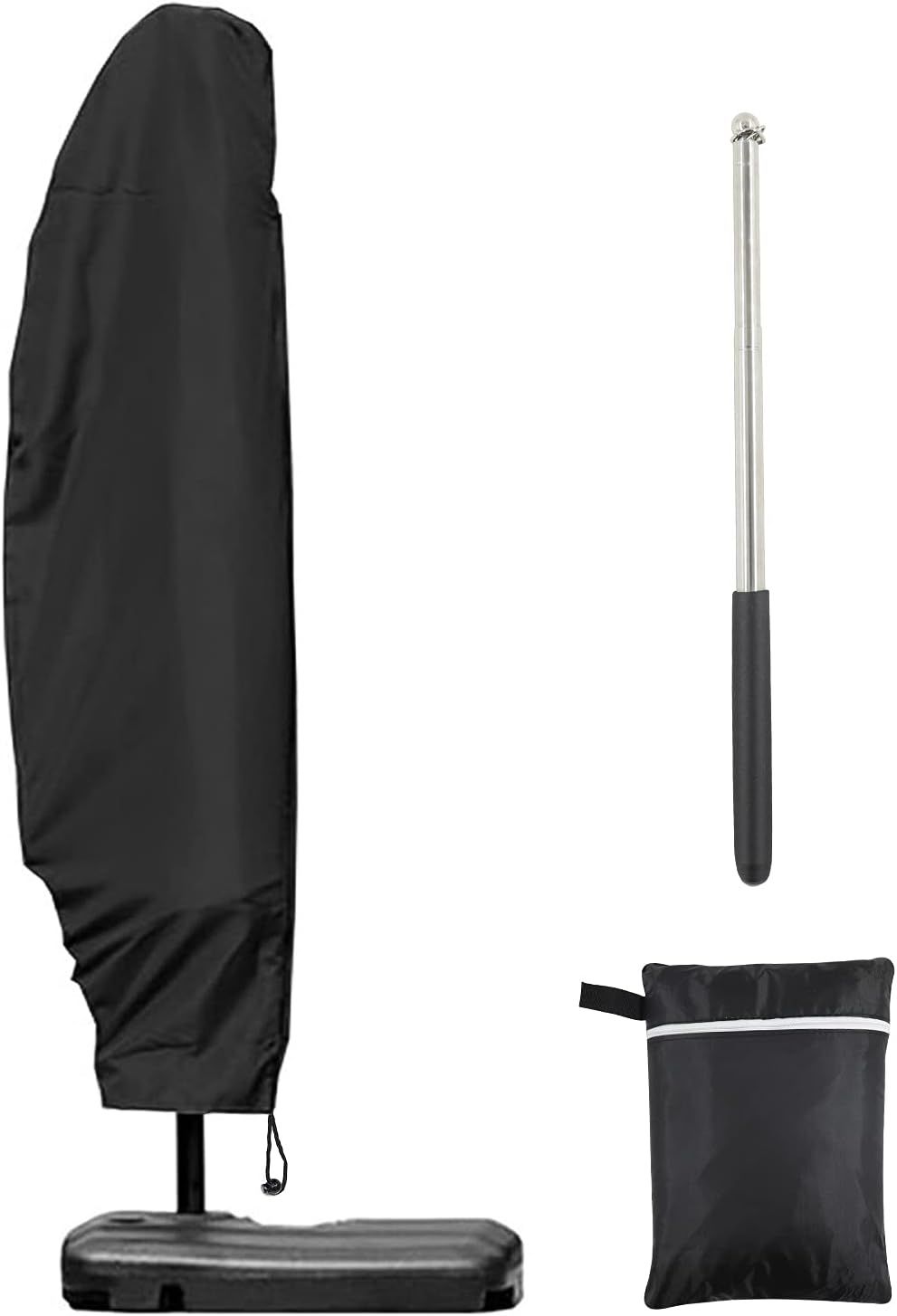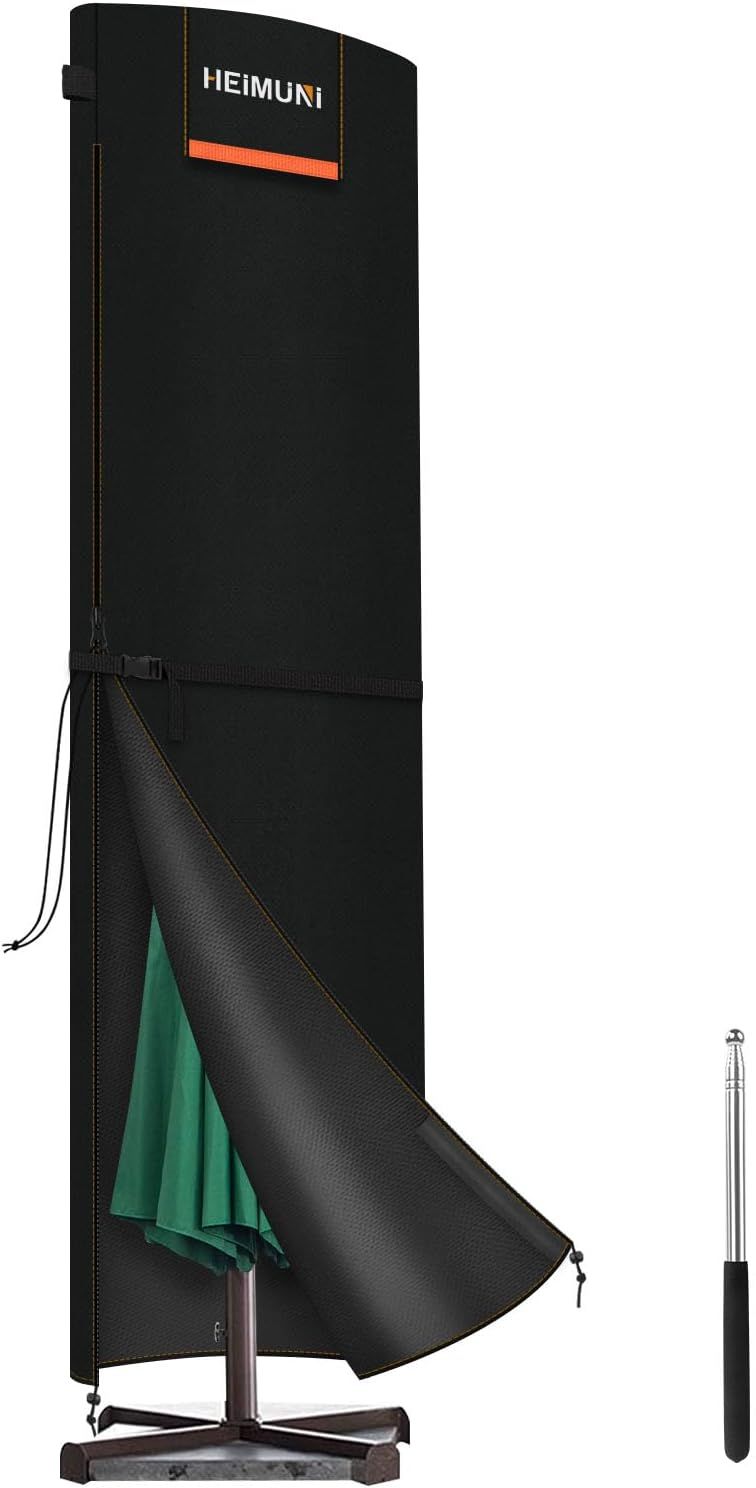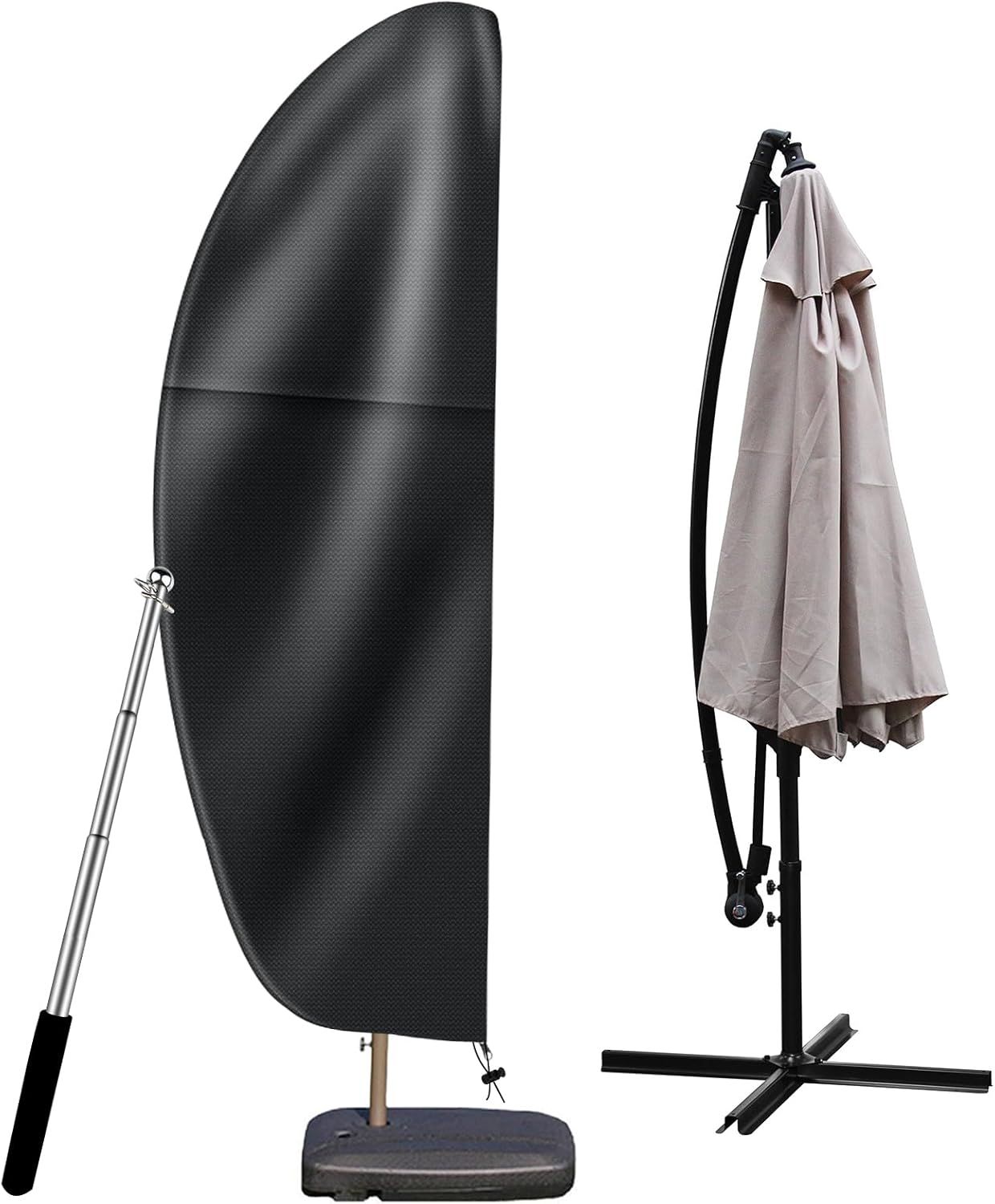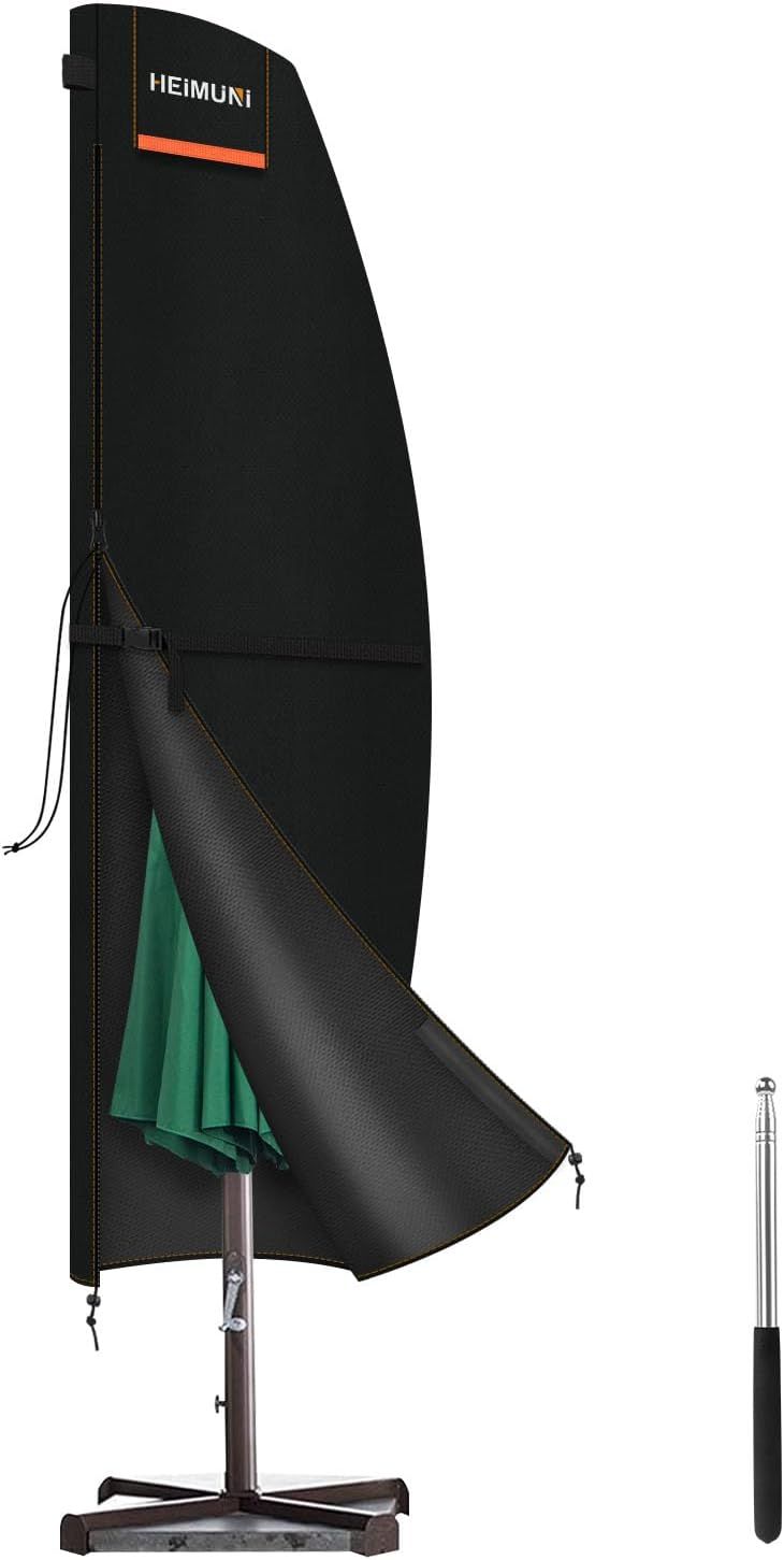 Housse pour Parasol Déporté – Couverture Imperméable 210D pour Parasol de 2 à 4m de Jardin – Housse Anti-Déchirure avec Fermeture Éclair et Cordon, Coupe-Vent