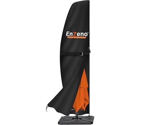 Enzeno Housse de Parasol déporté 4x4,Housse de Protection Parasol 4x3,Housse Parasol Déporté en Tissu Oxford 420D imperméable avec Tige avec Fermeture éclair- 3m à 4m-Noir(280 x 40/81/50 cm)