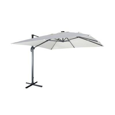 Sweeek Parasol déporté solaire LED 3x3m Luce écru avec lumière intégrée + housse