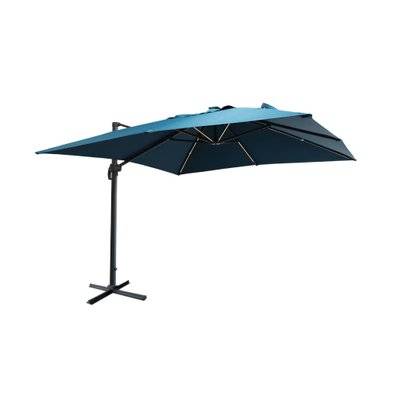 Sweeek Parasol déporté solaire LED 3x3m Luce bleu canard avec lumière intégrée + housse