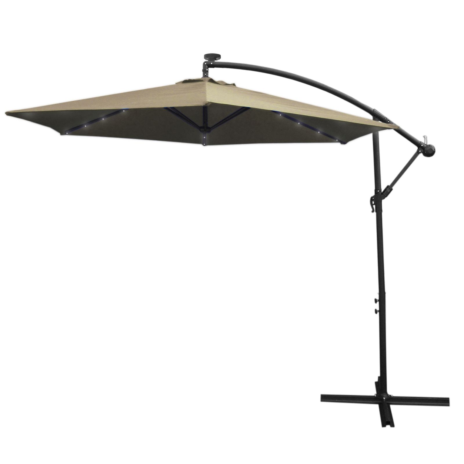 Parasol Déporté Beige 3m 24 Led À Energie Solaire Avec Manivelle Protection Uv Jardin Terrasse Patio Sans Base