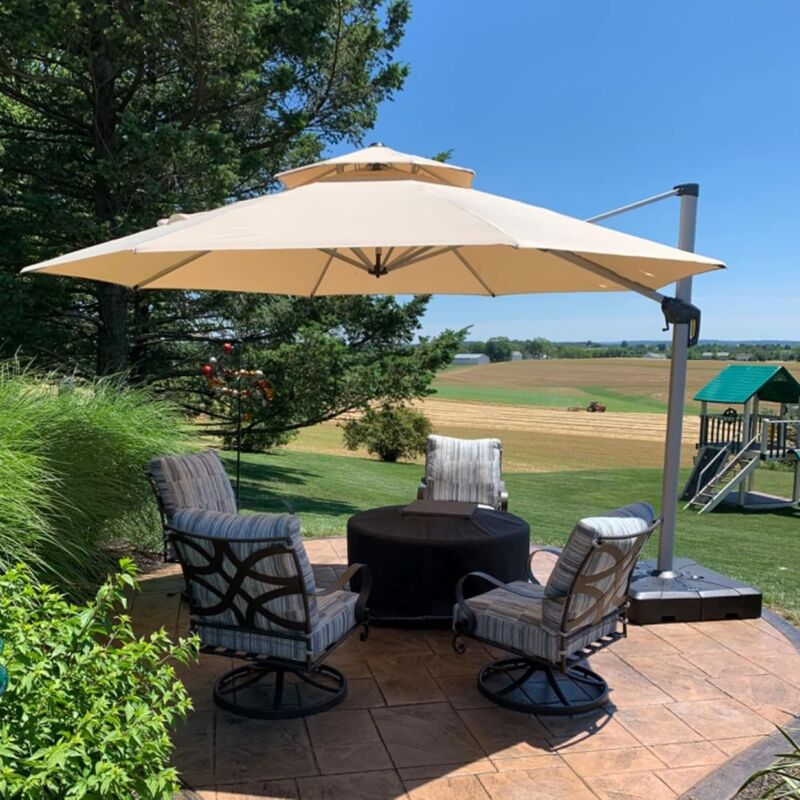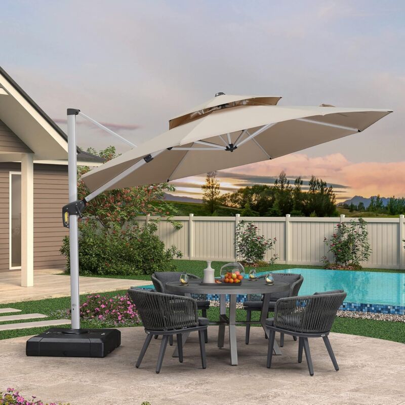 Parasol déporté double avec manivelle et aération -toile en polyester crème blanc 440 × 270 × 250 cm