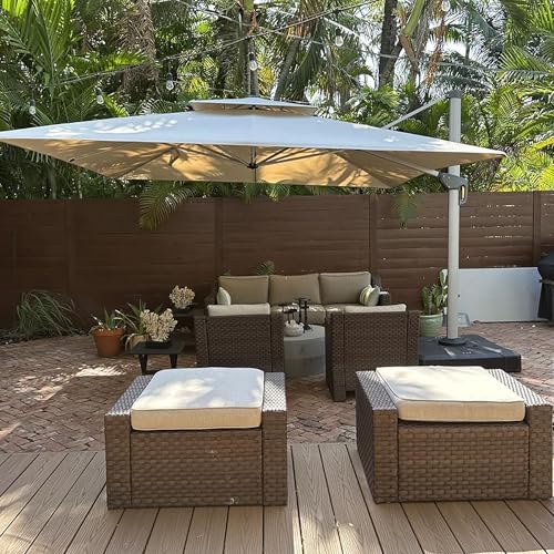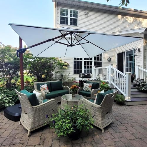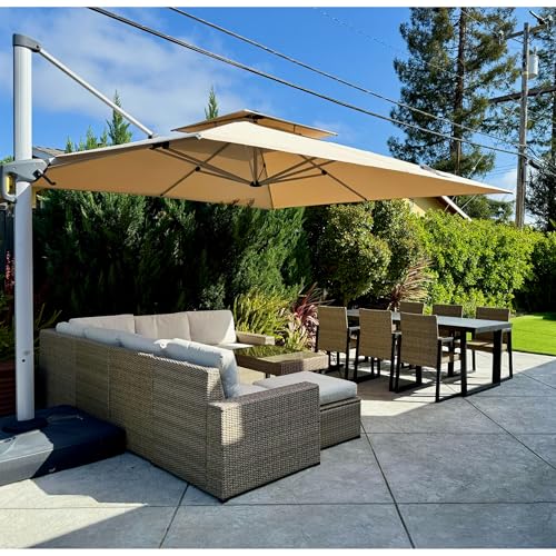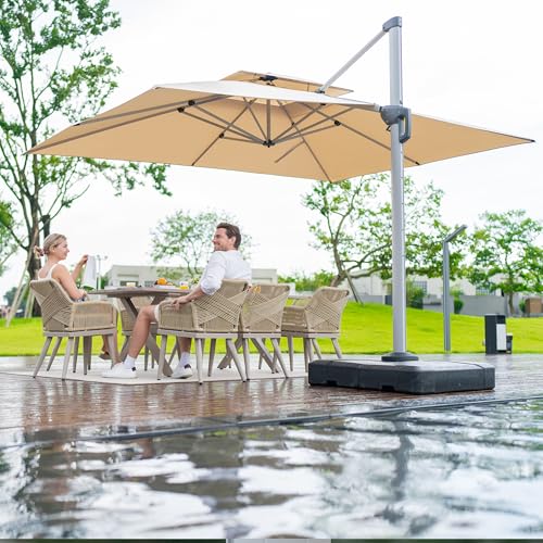 PURPLE LEAF Parasol Déporté 3,65 x 3,65 m Carré, Parasol De Jardin Extérieur, Toit à Double Rotatif 360°, Armature de Parapluie en Aluminium, Avec Protection Solaire UPF50+, Pour Piscines, Beige