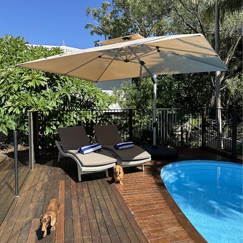 PURPLE LEAF Parasol Déporté Rectangulaire 2,7 x 3,65 m, Parasol De Jardin Extérieur Toit à Double Rotatif 360°, Convient aux Terrasses, Piscines, Cafés et Restaurants, Beige