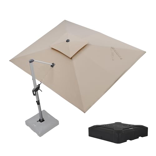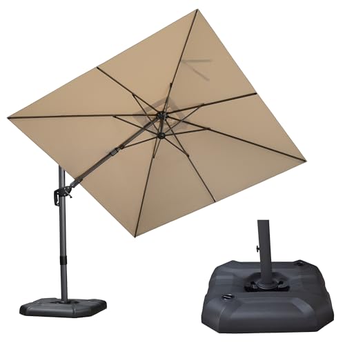 PURPLE LEAF Parasol Déporté 2,7 x 3,65 m Rectangulaire avec Pied, Parasol de Jardin Extérieur à Toit Double Rotatif 360°, Anti-UV, Convient au Patio, Piscines, Cafés et Restaurants, Beige