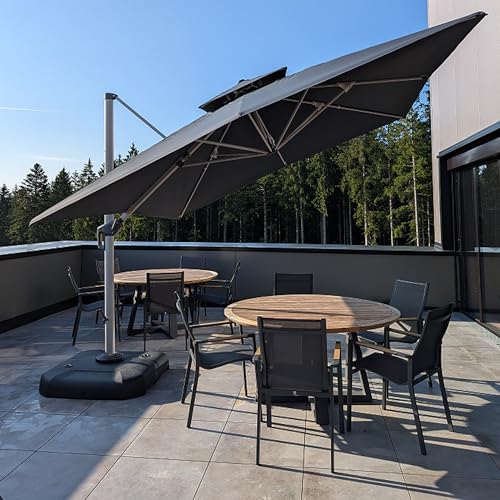 PURPLE LEAF Parasol Déporté 3 x 3 m Carré avec Pieds, Parasol de Jardin Extérieur à Toit Double Rotatif 360°, Pour Terrasses, Terrains de camping, Restaurants Extérieurs, Gris acier