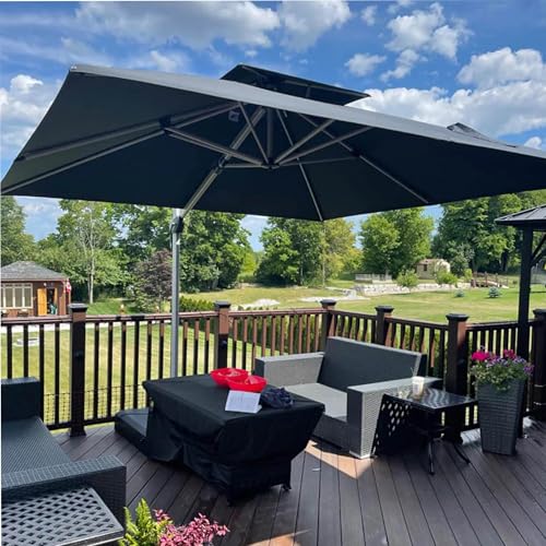 Costway Parasol Déporté 3x3M Carré, Inclinable 5 Angles, Hauteurs Réglables, Excentré Rotatif 360° Manivelle, Double Toit (Noir)