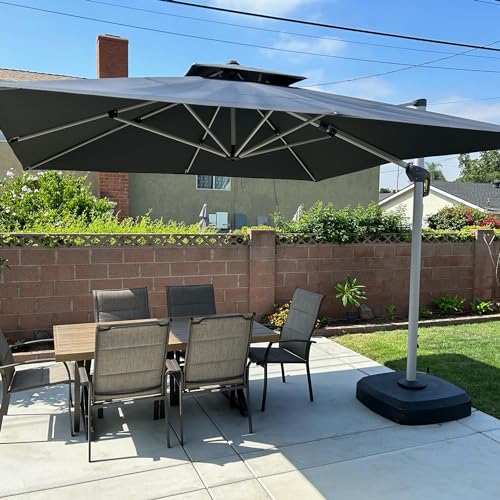 PURPLE LEAF Parasol Déporté 3,3 x 3,3 m Carré avec LED et Pied, Parasol de Jardin Extérieur à Toit Double Rotatif 360°,Protection UV, Pour Terrasses, Piscines, Restaurants Extérieurs, Gris acier