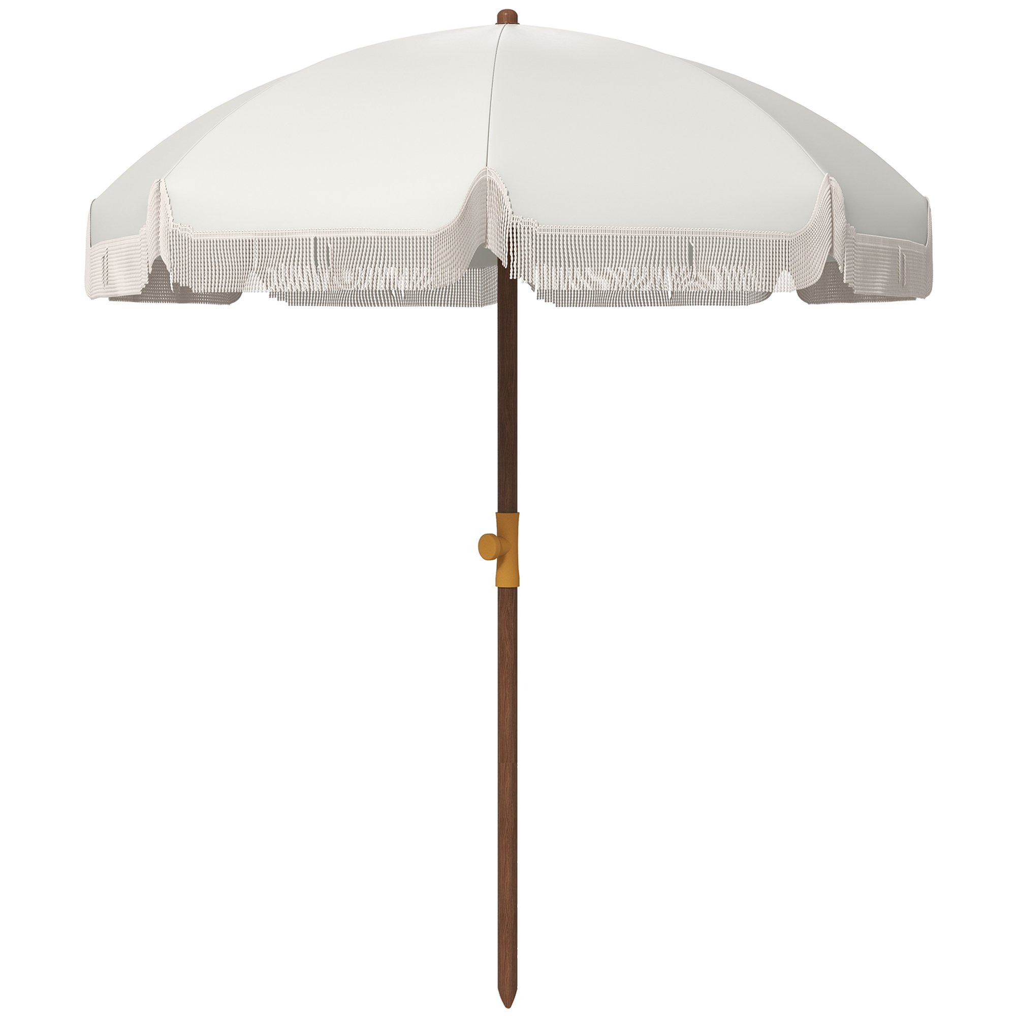 Outsunny Parasol de plage parasol d'extérieur rond parasol à frange protection UV 40 + avec 8 baleines crème