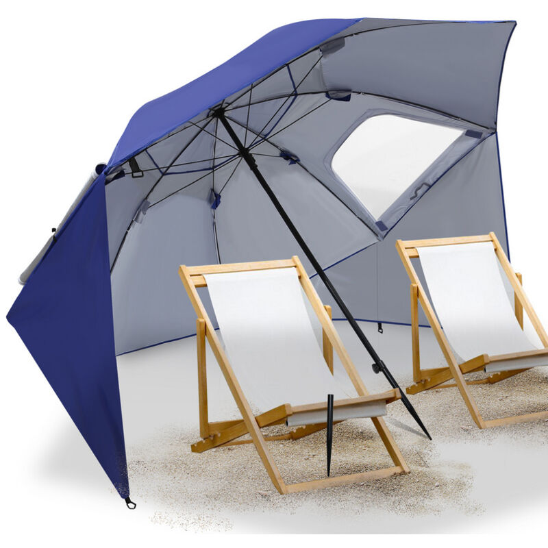 LIFERUN Parasol 200 cm, Parasol de Balcon, Inclinable, Plage UPF 50+ avec Fonction Pliable, 8 Baleines en Acier, Protection Solaire, Stable, adapté aux Balcons, Jardins et terrasses, Bleu