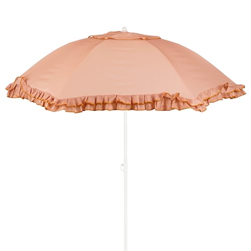 MICA Decorations Parasol Inclinable avec Volants - Protection Solaire 238 x Ø195 cm - Parasol Plage Jardin ou Balcon - Polyester, Acier - Terra