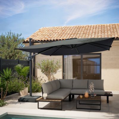 Parasol déporté inclinable carré ouverture manivelle anthracite 3 x 3m GoodHome Corby