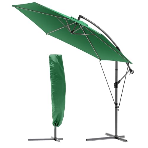vounot® Parasol Déporté Hexagonale 3M avec Manivelle Anti-Retour et Sangle de Fixation Parasol Inclinable Toile 180gr/m2 anti UV H235cm 6 Baleines en acier Inclus housse de protection Vert