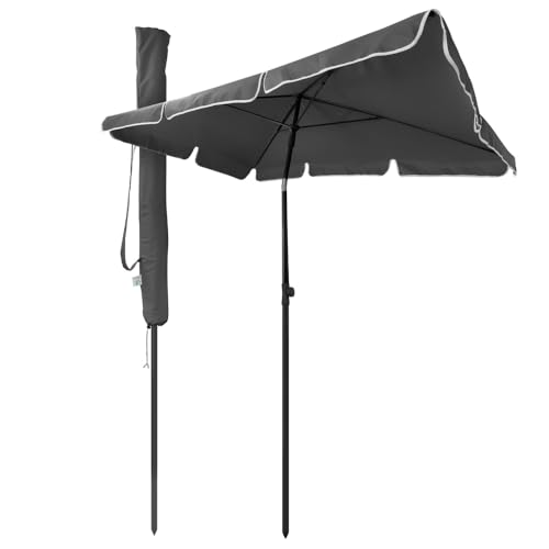 WOLTU Parasol de Jardin Extérieur, Parasol Plage, Rectangulaire Inclinable, Hauteur Réglable, pour Balcon, Terrasse, Marché, Protection UV, 160g/m², 2x1,2m, Gris Foncé