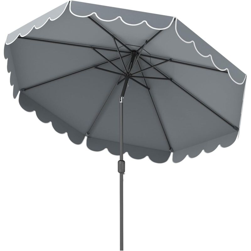 Parasol, Droit, Octogonal, Inclinable, avec Manivelle, Diamètre 3m, Toile Polyester, Extérieur, Terrasse, Jardin, Balcon, Plage, Piscine, Gris