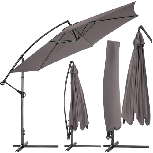 TecTake® Parasol de Jardin Exterieur Parasol Déporté Héxagonal à manivelle Cadre en Acier, Ø 350 cm, Inclinaison réglable, Protection UV, Résistant au vent, Housse de protection pour Parasols incluse