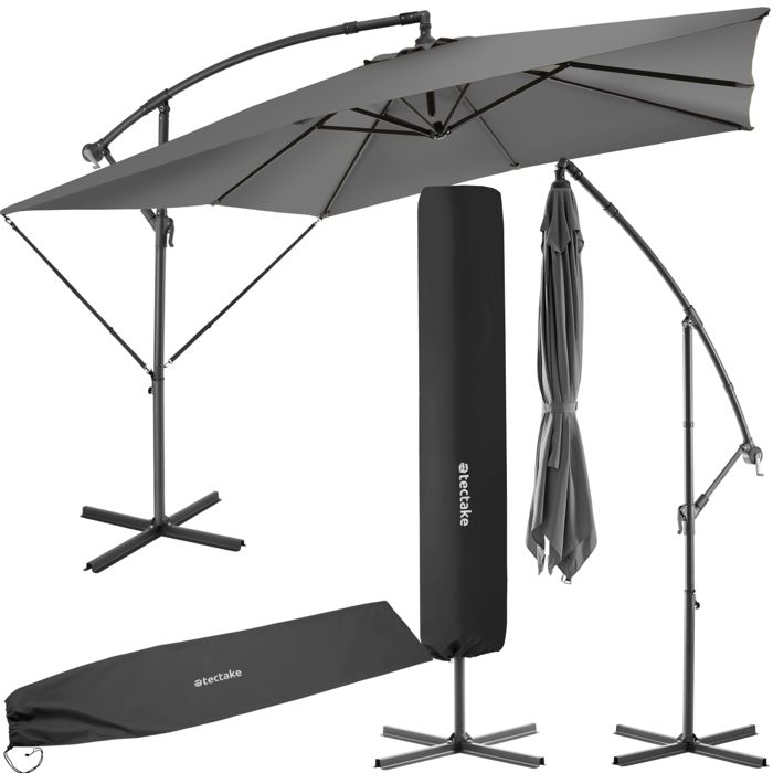 Tectake Parasol DARIA 300 cm avec pied déporté et housse de protection - rouge bordeaux