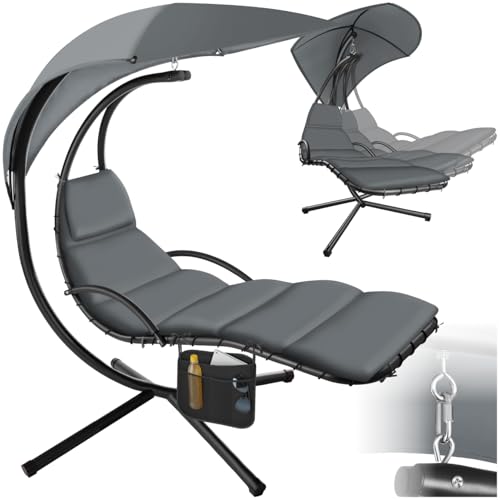 TecTake® Bain de Soleil Suspendu Siege Suspendu avec Support Fauteuil Confortable avec Parasol, Matelas, Protection UV et Poche latérale pour Salon de Jardin Exterieur ou Intérieur