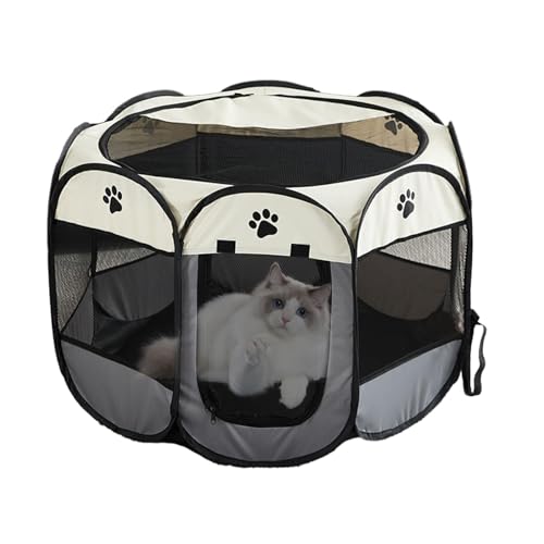 ETUCYNG Parc pour chat d'extérieur - Cage pour chien amovible et pliable en tissu Oxford avec fermeture éclair - Cage octogonale portable pour le camping, la marche, la clôture mignonne pour chat pour