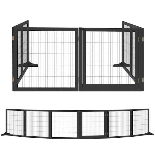 PawHut Barrière de sécurité Parc enclos Chien modulable Pliable Porte intégrée 300L Max. x 74,5H cm métal PP Noir