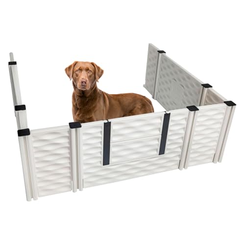 MAMIZO Parc pour Chien 60 cm Haut, Plastique Parc Chien 5+1 PCS Panneaux, Parc Chiot Pliable avec Portail, avec ventouses et ancrages au Sol, Enclos pour Chat et Lapin Interieur Extérieur, Blanc