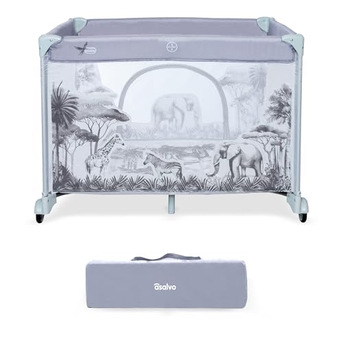 Asalvo SQUARE Parc pour bébé carré et pliable 93 x 93 cm, parc de jeux pour bébé, base rembourrée et sac de transport, jungle grise
