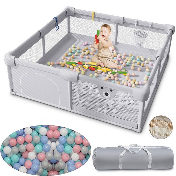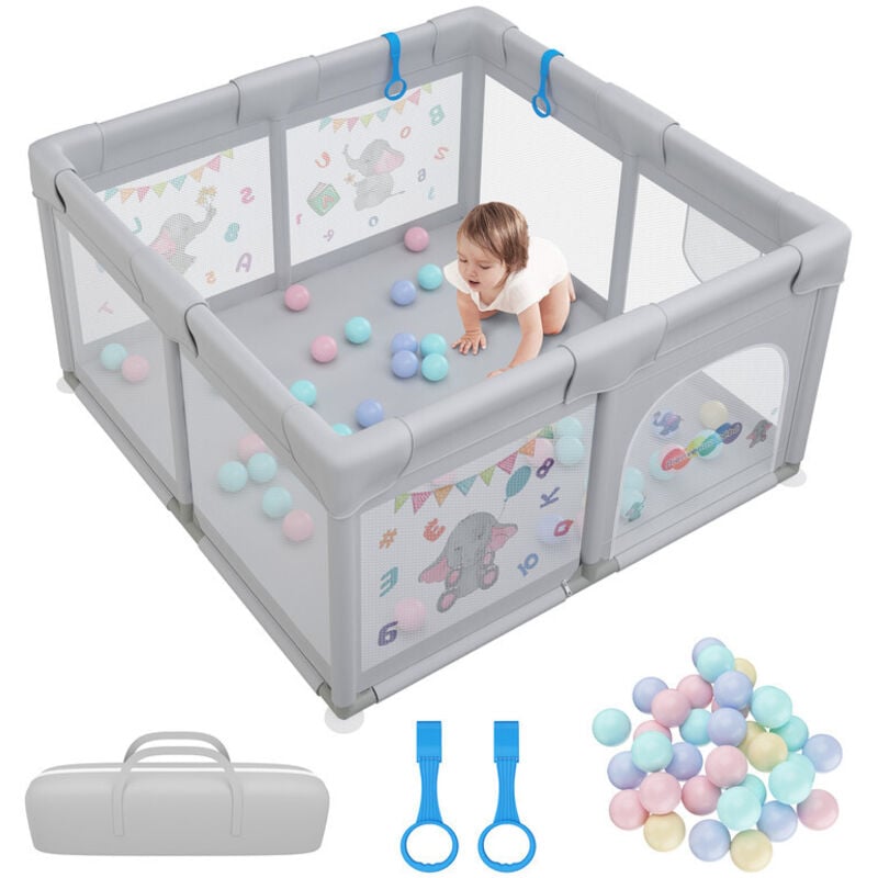 XUANYU.Parc Bebe - Parc Bébé en Tissu Oxford - Parc De Jeux Bébé pour Appartement Avec Balle - 126 * 126 * 66 cm - Gris clair