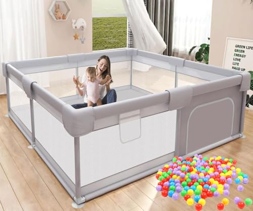 Aocase Parc Bebe, Parc Enfants, Grand Parc Bébé, Centre d'activités pour Nourrissons Aire de Jeux avec Éponge Anti-Collision, Parc Bebe pour Enfants Intérieur Extérieur,Light Gray,200x200x60cm
