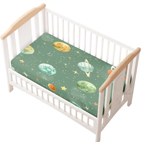 Odot Drap Housse Berceau, Housse de Matelas Berceau Douce Respirant Motif Planète Dessin Animé 3D Drap Lit Parapluie Protège Matelas Parc pour Enfant Fille Garçon (Planète,70x140cm)